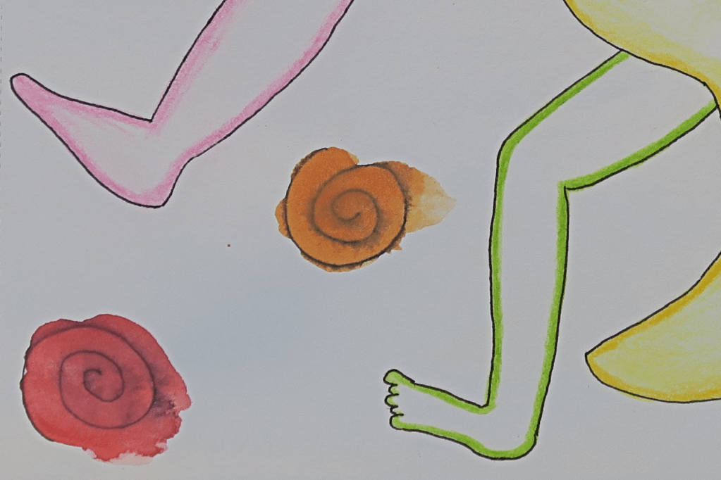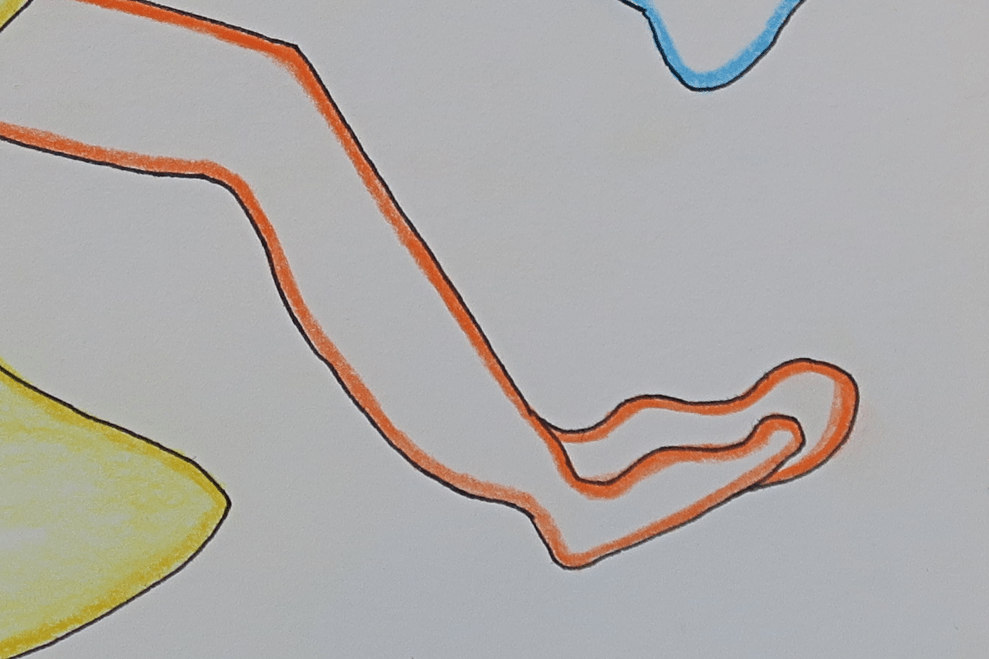 Medium: Mixed media on paper — including watercolor, wax crayon, marker, and cosmetic glitter polish.