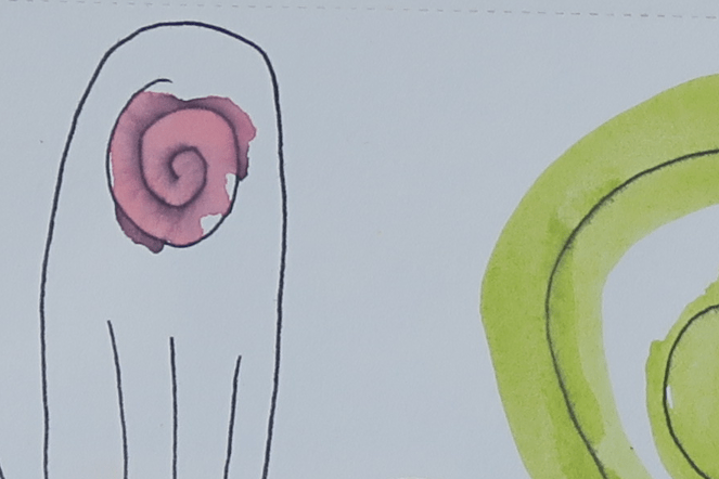 Title: DNA en andere verhalenMedium: Watercolor, marker and crayon on paper.Size: 21 x 29.7 cmYear: 2024