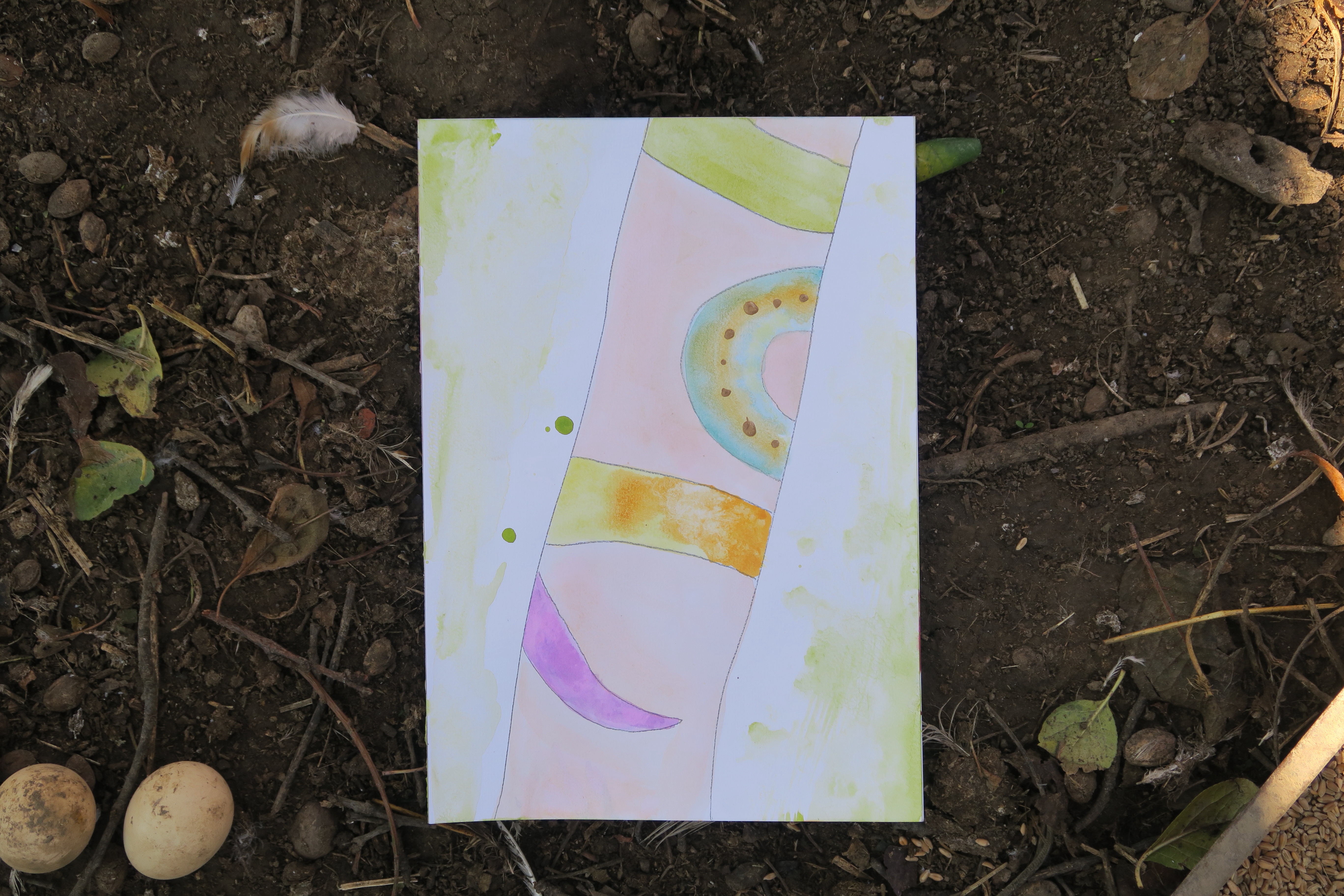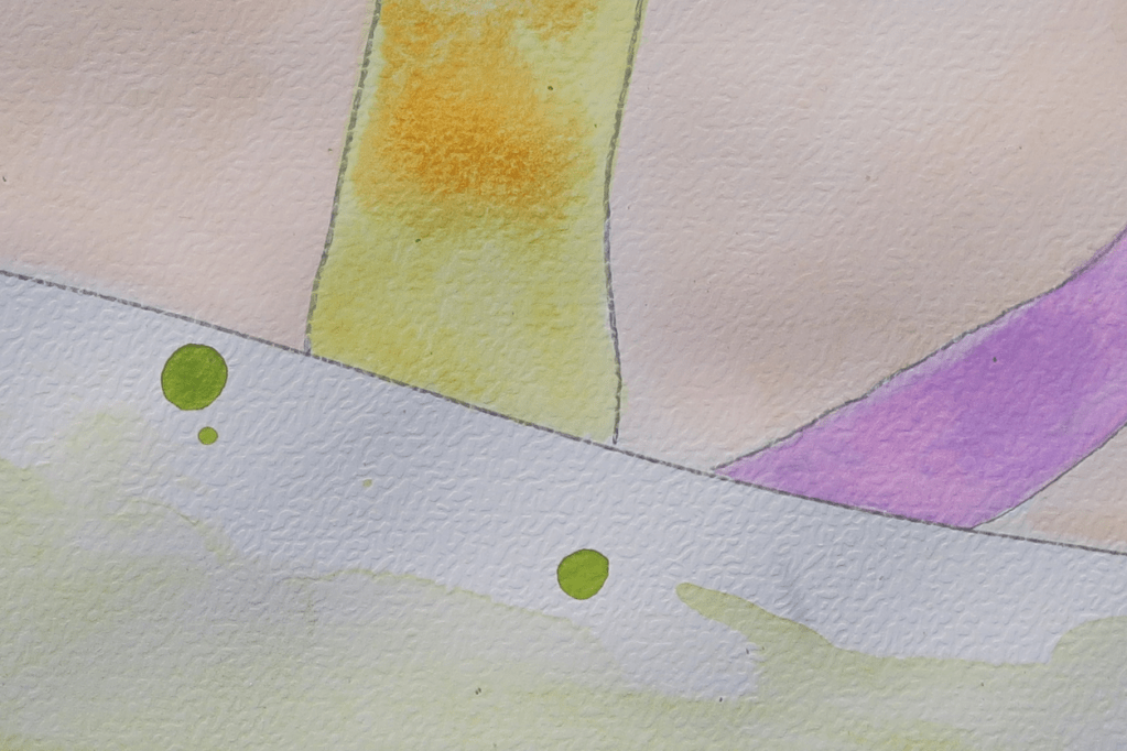 Medium: Watercolor, pencil and cosmetic gold polish on paper.
