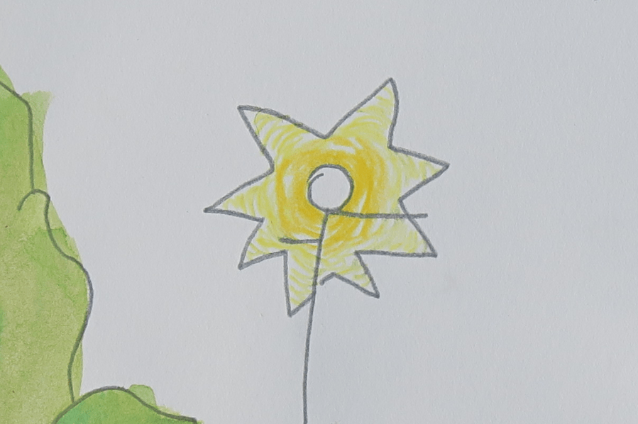 : Watercolor and pencil on paper.