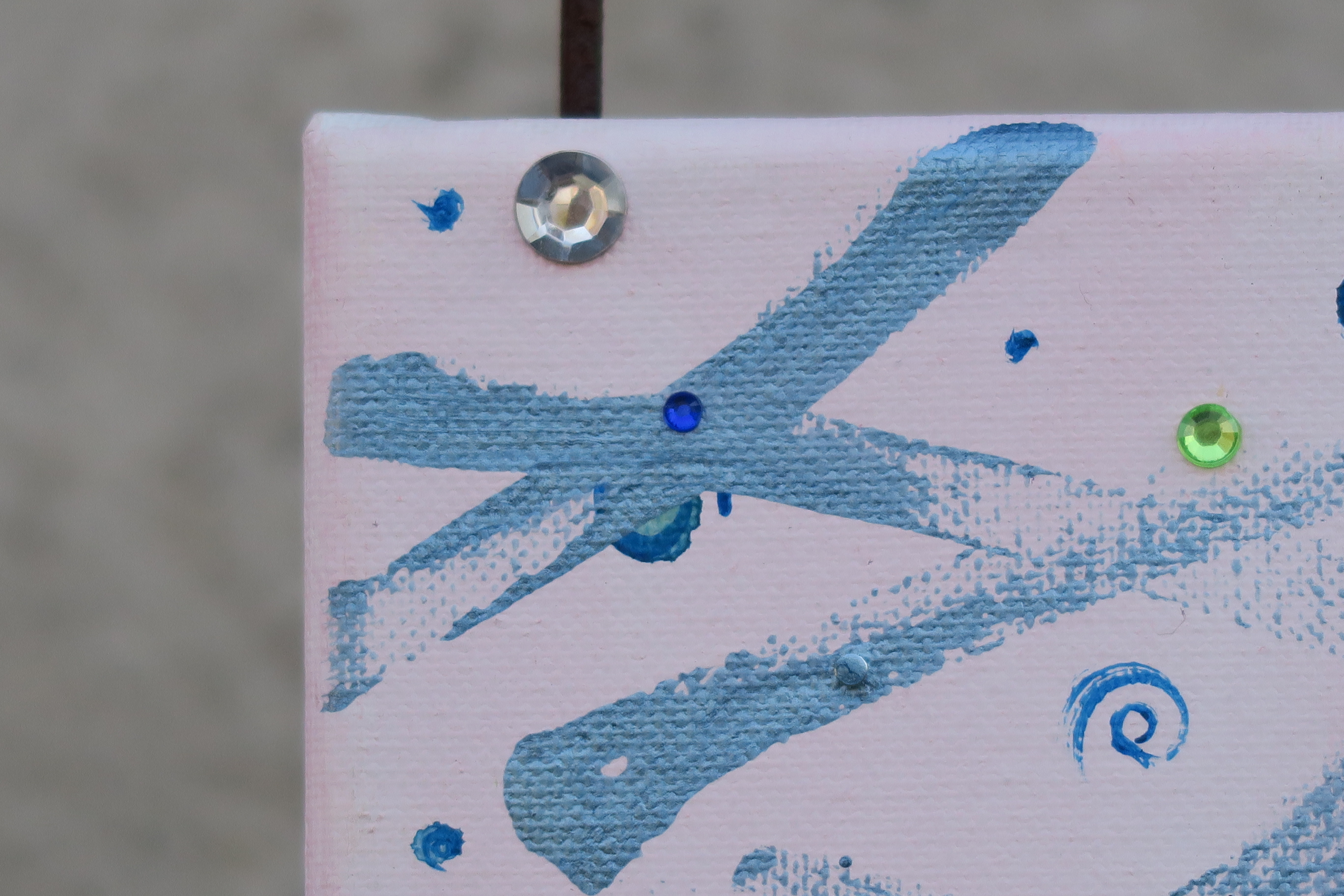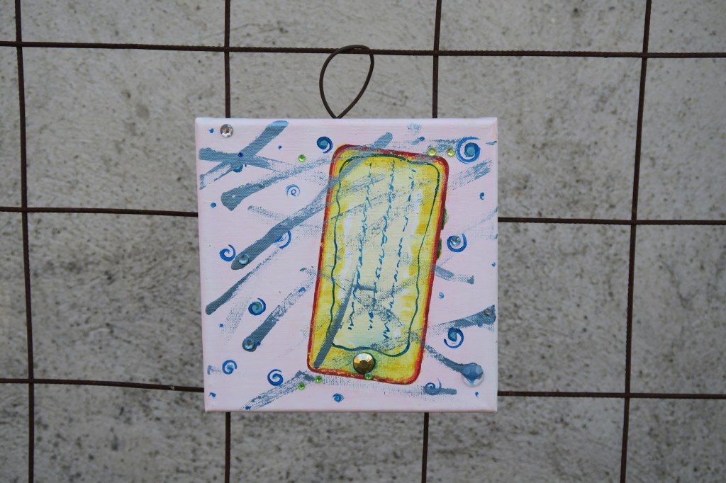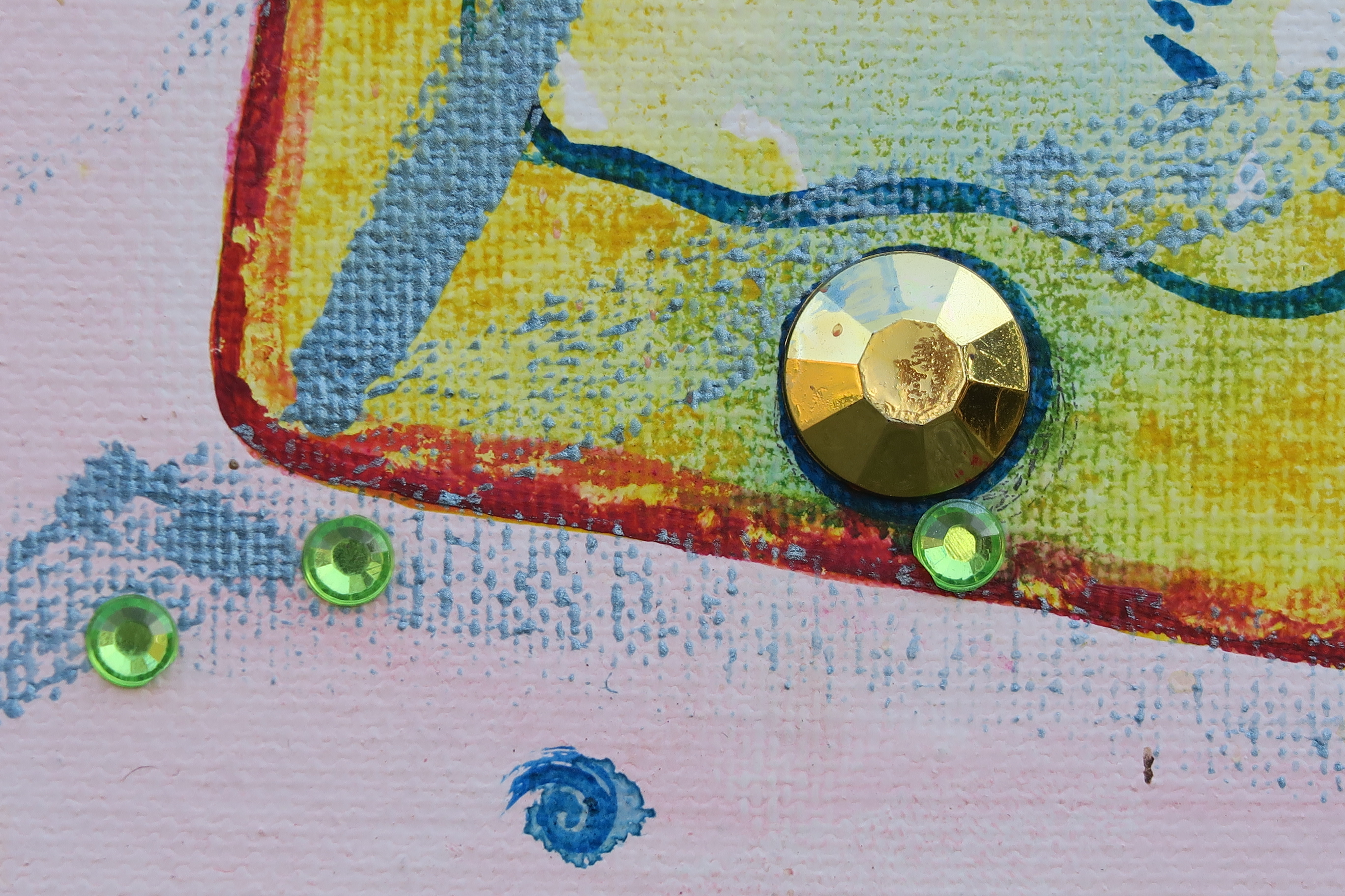 Title: Last CallMedium: Acrylic on canvas. Embellished with plastic gemstones.Dimensions: 20 x 20 cm Year: 2024