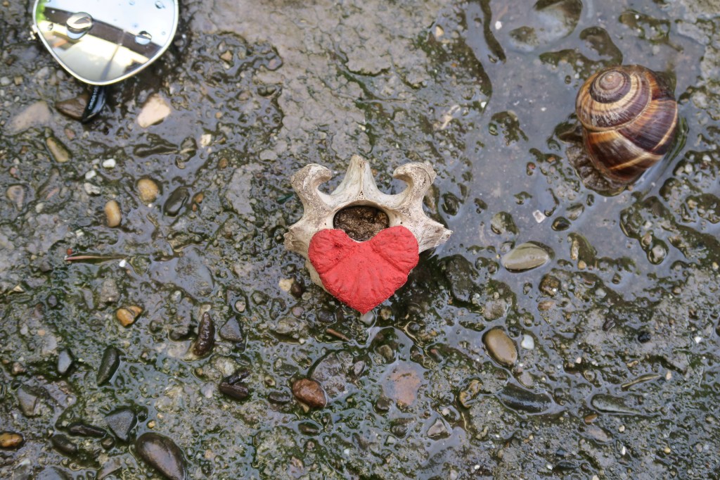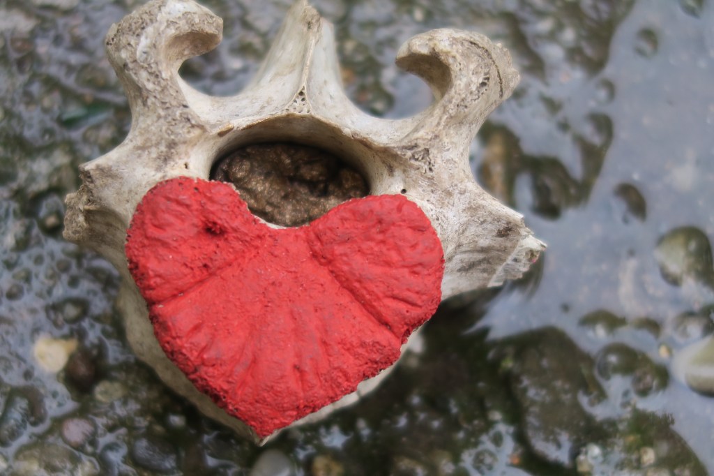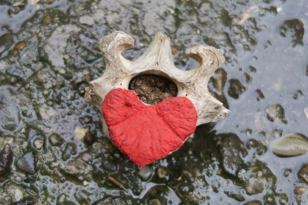 Acrylic and gold paste on bone relic.