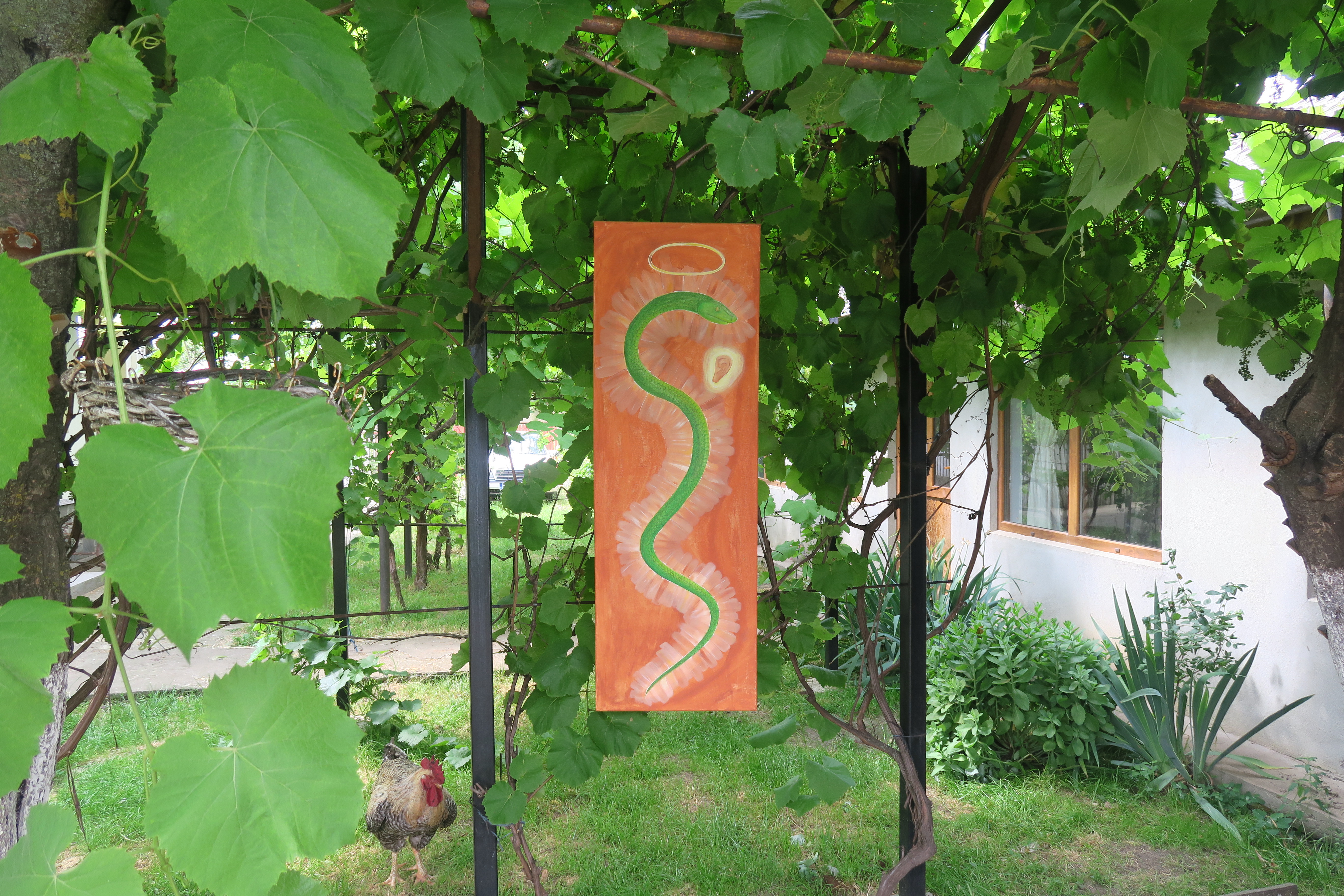 Title: Garden of EdenMedium: Acrylic paint, wax and gold paste on canvas.Dimensions: 120 x 40 cm Year: 2025